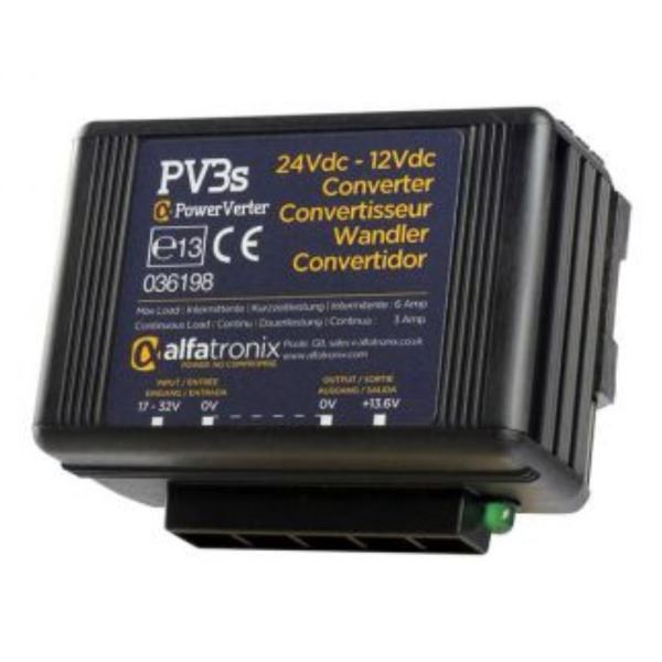Alfatronix PV3S 24VDC to 12VDC Converter Non-Isolated (Common Earth) - 3A Continuous 6A Intermittent
