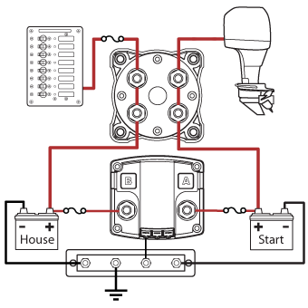 The Add-A-Battery includes a Dual Circuit Plus™ Battery Switch and an Automatic Charging Relay. These components simplify switching and automate charging, so that all you have to do is turn the battery switch ON when you arrive and OFF when you leave.