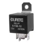 The Durite 0-728-12 12V 20A-30A Mini Changeover Relay is designed for switching between two circuits. Its compact size makes it ideal for space-constrained applications, controlling devices like lights and motors in automotive, marine, and industrial systems.