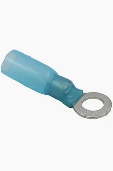 This pack of 10 blue ring crimp terminals comes from the AMC (Auto Marine Cables) range of heat shrink pre-insulated terminals. The blue sleeve colour signifies that the terminal will suit conductors between 1.5mm² and 2.5mm². These are pre-insulated heat shrink ring terminals made from tinned copper, providing a long lasting environmental seal.