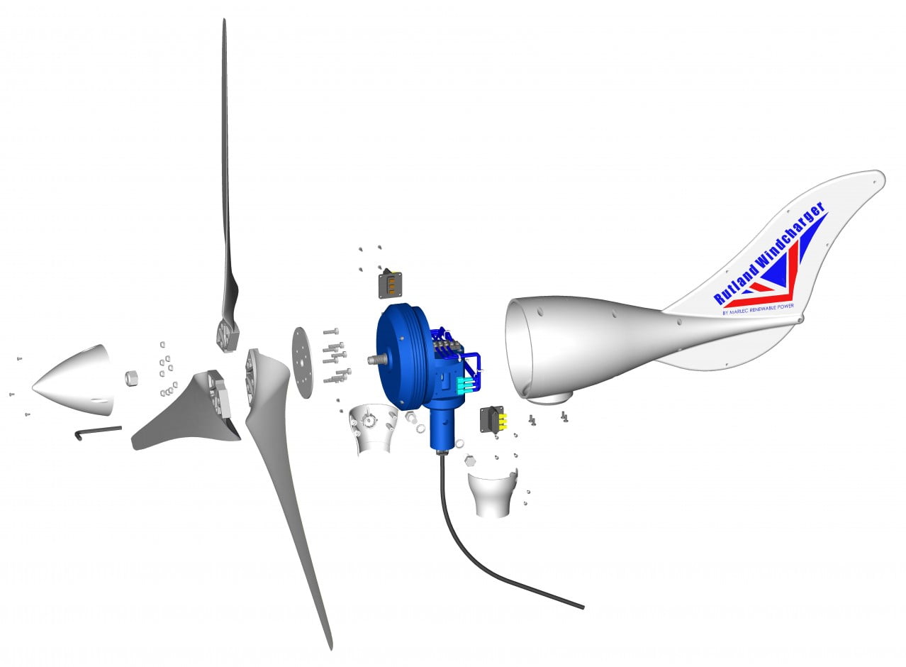 The Rutland 1200 Marine is the latest in the Rutland family of marine turbines used by yachtsmen around the world since our first model in 1978. This high efficiency and technologically advanced turbine uses a high-tech MPPT controller specifically designed for charging 2 battery banks with the feature to accept input for solar panels.
