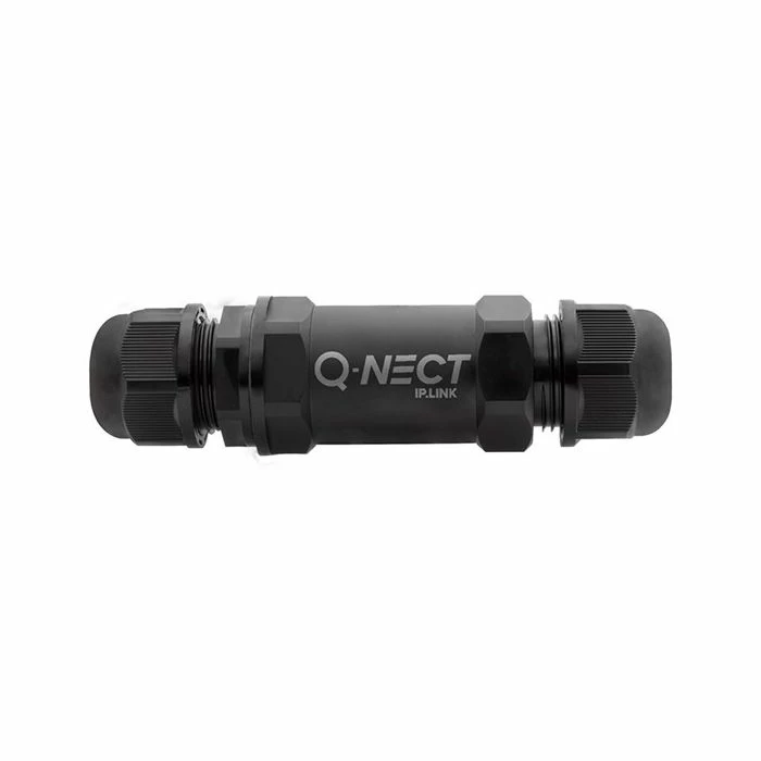 The Unicrimp QOE3052BLK 5 Pole 2 Way IP68 Inline Connector is made from tough nylon, featuring silica gel seals, 2 x PG16 entries, suitable for 450V and 100°C, offering reliable outdoor cable connections with excellent weatherproofing.